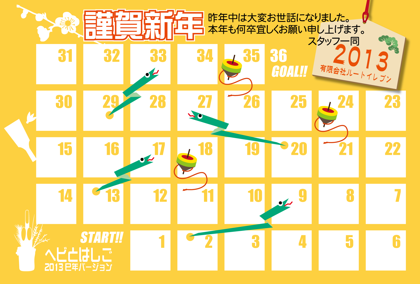 2013年からの年賀状には、十二支にちなんだオリジナルのゲームを付けています。